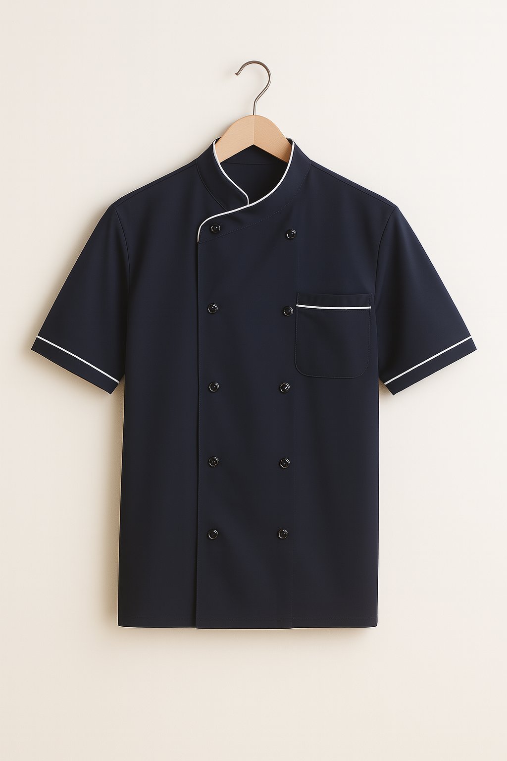 The Contrast Trim Chef Jacket is a professional-grade chef jacket designed for both performance and presentation. Its double-breasted design offers a traditional kitchen look while protecting against heat and spills. Crafted from breathable, durable fabric, it keeps you cool under pressure and holds up to the rigors of daily use. Ideal for culinary professionals who take pride in their craft.