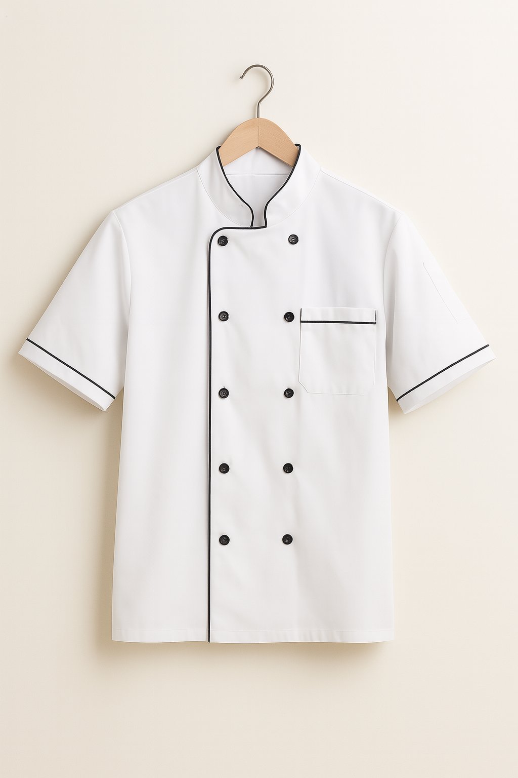A professional chef jacket designed for comfort, durability, and a sharp appearance in the kitchen.